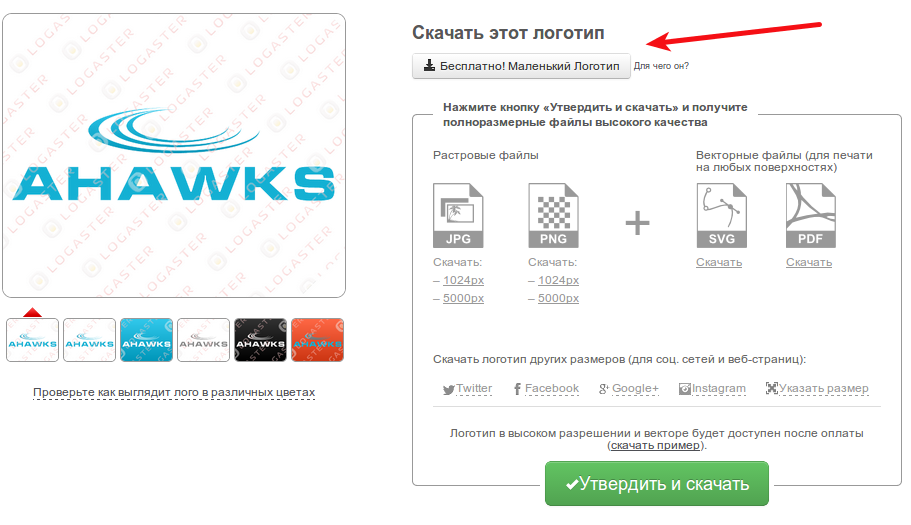 Рекомендуем скачивать лого в малом расширены, чтобы проверить как он выглядит. Если все нормально, нажимаем утвердить и скачиваем лого в полноценном расширении. Как видеть, все довольно просто.