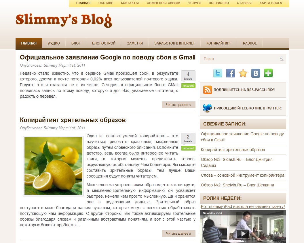 Вторым блогом на сегодняшнем обозрение будет сайт моего друга Данила (Slimmy) блог про копирайтинг.