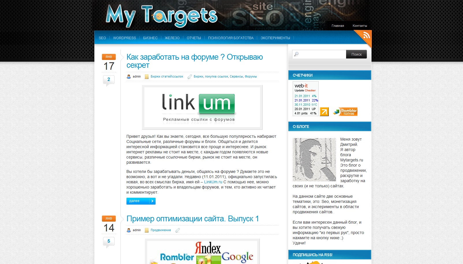 Сегодня я делаю обзор сео блога – mytargets.ru, блог с интересным контентом. Из всех 10 обзоров именно на этом блоге я прочитал больше всех постов, которые находятся на главной странице. Контент хороший поэтому хочется пожелать больше посетителей на блог и дать советы по улучшению блога.