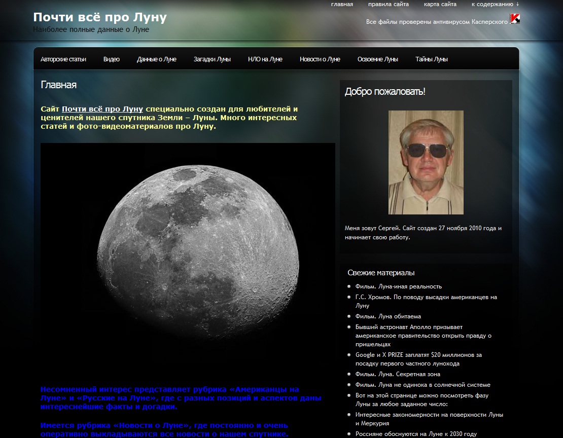 Первый блог на обозрение — это сайт про Луну и все, что с ней связано. Без прелюдия сразу перейду к обзору.