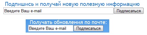 Я рекомендую использовать специальную форму, потому что подсознательно посетитель может вбить адрес своей почты и стать подписчиком вашего блога. Поэтому сделайте как у меня, выведите эту форму отдельно на главную страницу – в сайтбар, подвал или шапку сайта и в конце постов, чтобы если понравился материал, любитель почтовых рассылок подписался на ваш сайт.