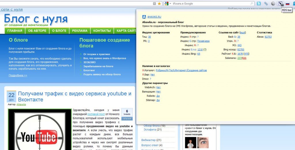 Я для анализа сайтов использую специальный виджет, который можно установить на любой браузер (опера, хром или фаерфокс) RDS Bar. При посещении любого сайта я могу с помощью иконку РДС Бара узнать много интересно про сайт, включая индексацию сайта. Думаю, когда-нибудь я подробнее опишу про данный виджет или аналогичные по функциональности.
