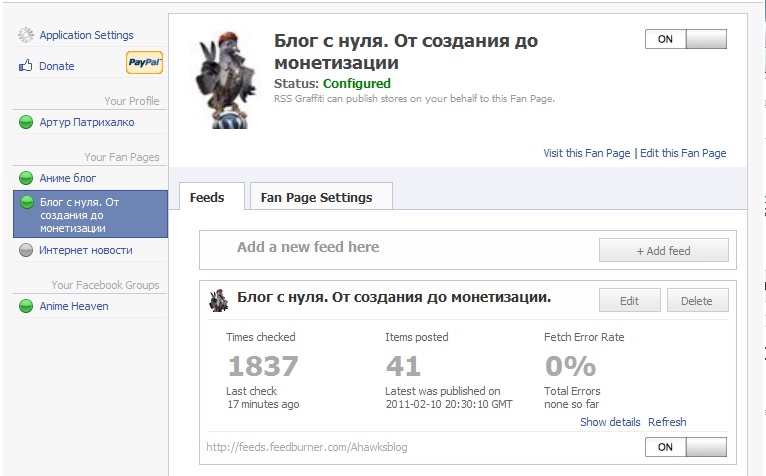 Наполняем страницу Facebook кросспостингом из RSS приложением RSS Graffiti