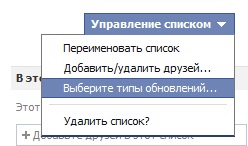 Для просмотра обновления из определенного списка, перейдите на главную страницу и нажмите на название списка в левой колонке. Тогда Вы увидите список новостей, содержащих обновления только у людей из списка.