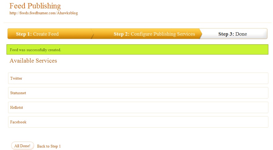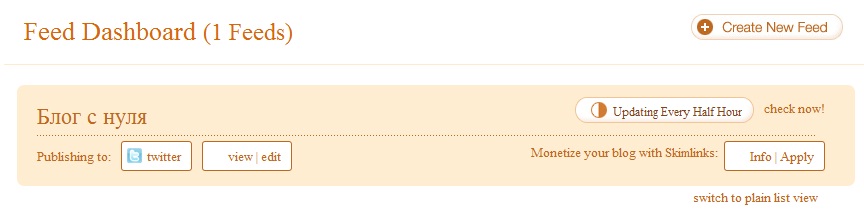 В итоге вы видите, что то на подобие как на изображение выше. Где на Feed Dashboard будут фигурировать названия ваших лент RSS, а под их названиями сервисы в которые настроен кросспостинг.