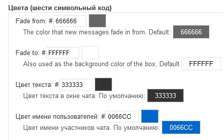 В плагине можно указать число отображаемых последних записей в чате, периодичность обновления записей, длину затухания, можно расширить поле для ввода сообщений, добавить возможность пользователям оставлять URL под своим ником, добавить звуковое оповещение, добавить смайлики к посту, добавить простую математическую капчу на выбор правильного ответа и другие настройки.