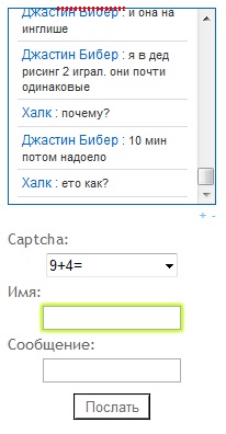 Поздравляю, вы установили плагин wordpress для гостевой книги или чата. Теперь, чтобы вывести данную форму на сайт или блог необходимо в административной панели – внешний вид – виджеты, найти в левой верхней части виджет shoutbox и перетащить его в нужное место в сайтбар. Если все сделано правильно, то на странице сайта появится чат, как показано на рисунке. Простой обычный мини чат, изменив настройки можно подогнать дизайн гостевой книги под общий дизайн блога и добавить дополнительные функции.