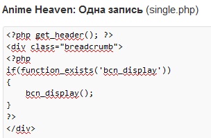 После данной строчки с кодом необходимо вставить часть кода от плагина breadcrumb navxt: