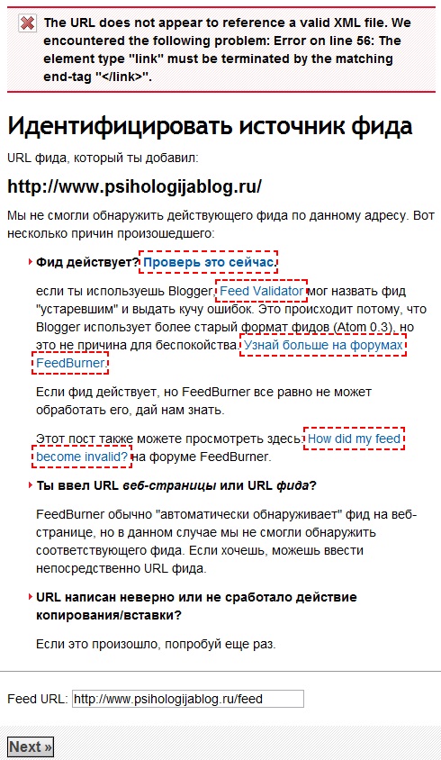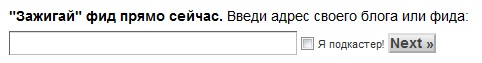 Теперь под словами «"Зажигай" фид прямо сейчас» в поле ввода указываете адрес своего блога к примеру — http://www.psihologijablog.ru. Если после ввода адреса вашего сайта выдает ошибку о не нахождения источника, тогда в вашем шаблоне должна присутствовать кнопка RSS и копируйте её адрес, в моем случае это выглядело бы так http://www.psihologijablog.ru/feed и нажимаем продолжить.